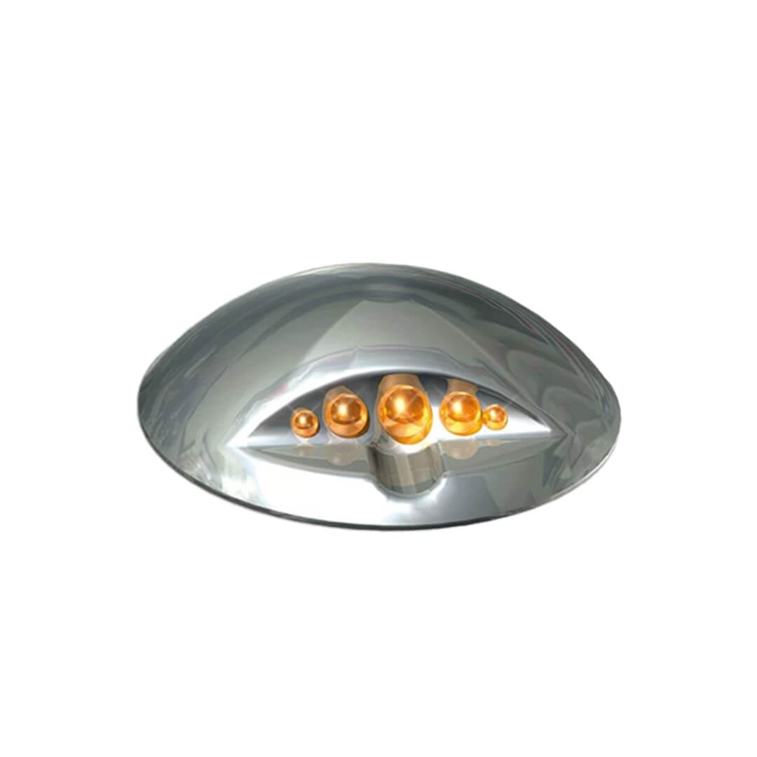 Descripción: Botón fabricado en acero inóxidable. Alta resistencia a impactos. Ideales como reductores de velocidad, para señalar zonas peatonales, cruces, vueltas, etc. Con esferas reflejante. Medidas: diámetro: 10 cm altura: 2.5 cm. No incluye perno.