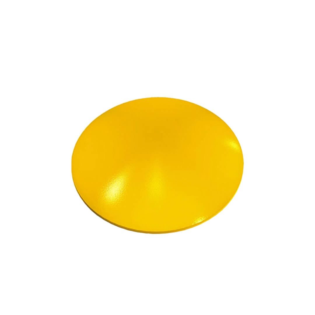 Descripción: Botón fabricado en cerámica horneada. Alta resistencia a impactos. Ideal para señalar zonas peatonales, cruces y vueltas. Color: Amarillo. Medidas: diámetro: 10.3 cm. altura: 2.1 cm. Caja con 50 piezas.