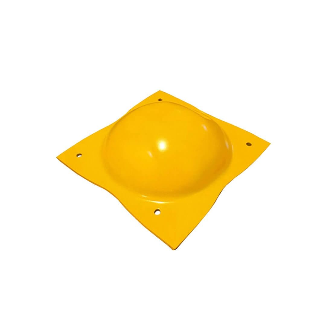 Descripción: Boya troquelada en lámina cal. 10 acabado en color amarillo micropulverizado. Poliéster horneado. Incluye 4 clavos de 1/4” x 2 1/2” de acero alta resistencia. Medidas: 21 x 21cm. Altura: 5.5 cm. No incluye reflejante.