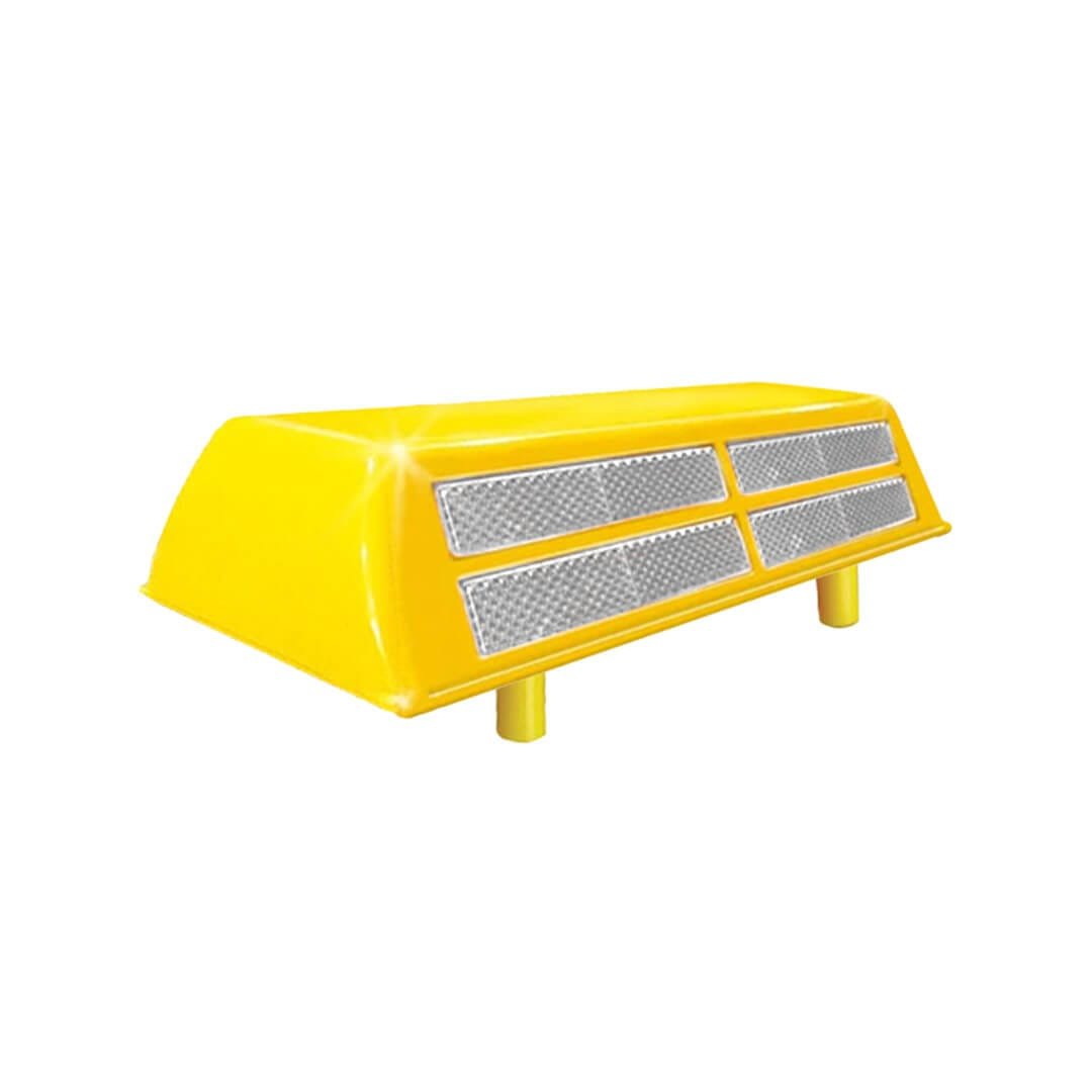 Descripción: Cuerpo fabricado en abs, con 4 reflejantes en color Blanco. Excelente como reductor de velocidad. Gran resistencia. Medidas: Largo: 25.0 cm. Ancho: 10.5 cm. Alto: 4.5 cm. Incluye dos pernos ABS.