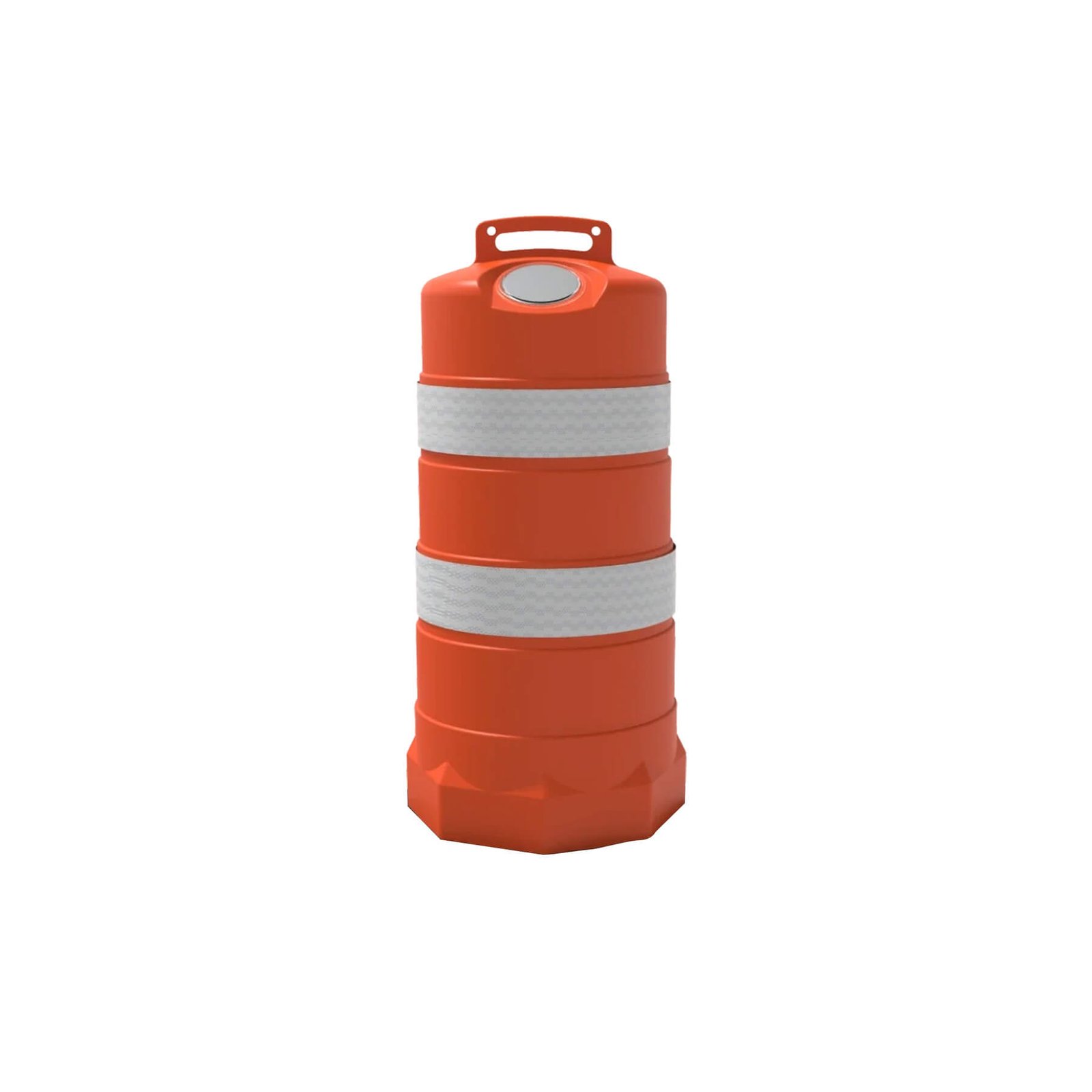 Descripción: Fabricado en polietileno de alta densidad color anaranjado con base o sin base desmontable negra resistente a la fuerza del viento. Sistema de iluminación interna a base de leds rojos parpadeantes. Dimensiones: 50 cm diámetro base, 43 cm diámetro superior, 1.07 m altura. Alimentación solar mediante celda fotovoltaica y baterías recargables. Con reflejante.